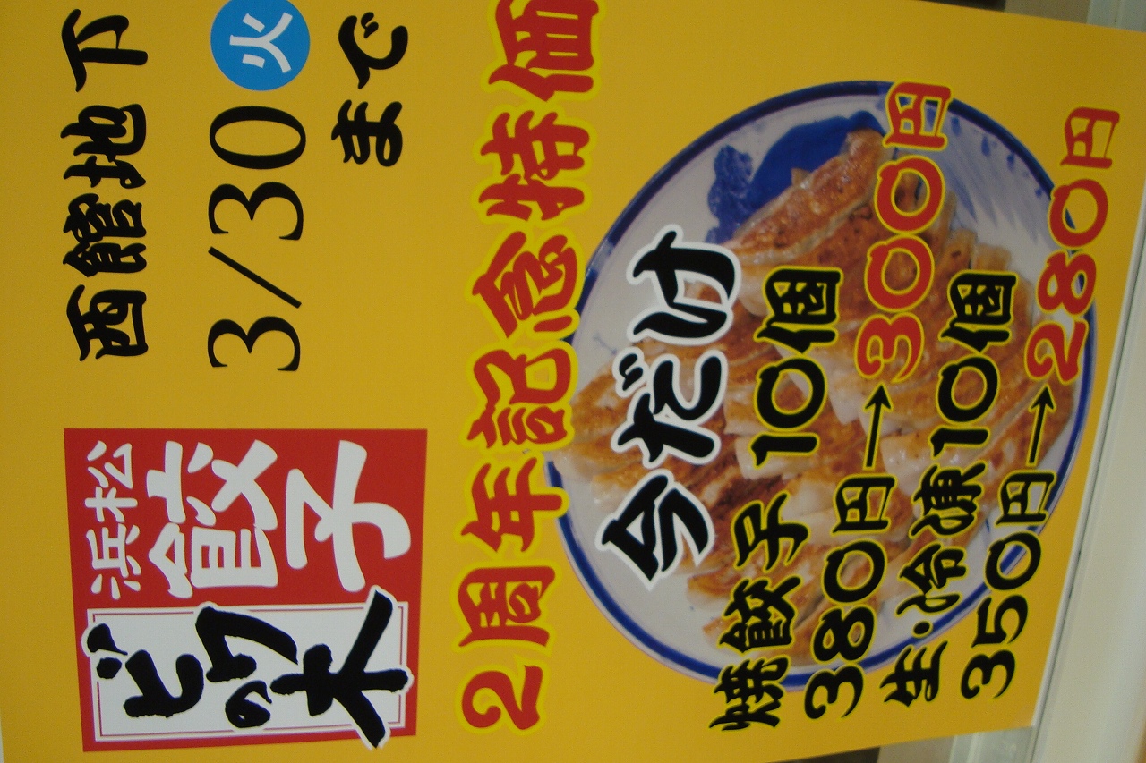 三ノ宮から人を少なくしたらこんな感じになるだろう。行ってみたらわかるよ( とりあえず改札からでないことには話にならないので18きっぷに途中下車印をもらって改札を出て、 左側の観光案内所に行って聞いてみた。 「ここから一時間くらいで行って帰って来れるところってどこですか」 「浜松城がお勧めです。桜がきれいです」 「一時間ってずいぶん失礼な話なんだよなぁ」とボヤいてみたら、 「なんで」という一般人の反応が返ってきた。 「だってさ、」「その町に時間を一時間以上使う気は無いってことだぜ」 言葉を区切るようにしてそう返した。「ふぅん」 歩いて15分、横断歩道の極端に少ない街並みをくぐりぬけ、浜松城に到着。 市役所から城までは桜並木になっていた。 写真を取りながら移動し、城の隣のほこらに賽銭と称して1円を放り込みその後写真を取り退散した。 やっぱりこういうところを見に行くとできるだけ速攻で片付けようとする俺。 また駅の方向に進み、浜松餃子の店を探して歩いていると 「百貨店にならあるだろう」という結論に達し、百貨店に入ると「一皿10個入り300円今日まで(要約)」 という看板が出ていたので地下一階のその店に行った。 俺はそこで食べることにしたが之助は持ち帰りなので10分程待った。 その間、「家まで8時間位するんですけど持ち帰れますか」と聞いたら「それは無理」というつれない返事。 隣のスーパーで面白いものでもないかと探したけど特に見当たらなかったので駅に戻り、 コンビニでうなぎパイを20枚買ってお土産にして、12:19発の豊橋行きで出発。 この辺りから予定が狂い始める。 |